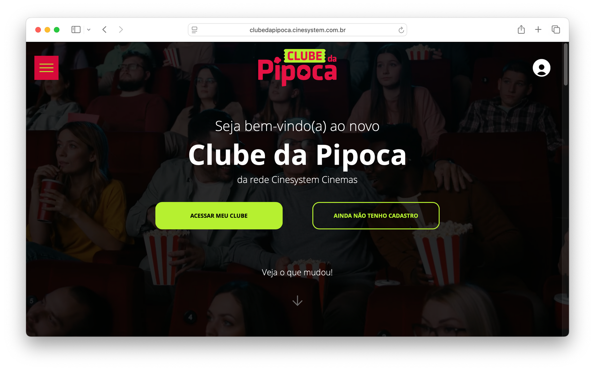 Interface interativa para o programa de fidelidade de uma das maiores redes de cinema do país.